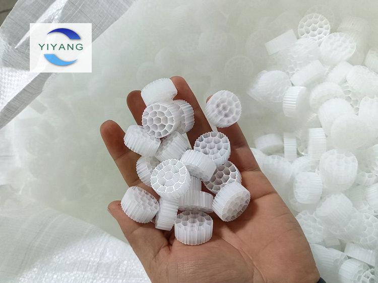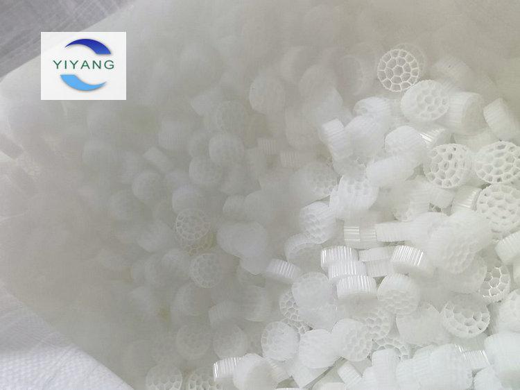 無好氧生物流化床工藝中采用MBBR流化床填料作為生物膜載體填料,產品材質HDPE高密度聚乙烯,這種填料為中空結構,正常運行進,填料懸浮在水中。MBBR流化床填料內部生長厭氧菌,產生反硝化作用可以脫氮;外部生長好氧菌,去除有機物,整個處理過程中同時存在硝化與反硝化過程。