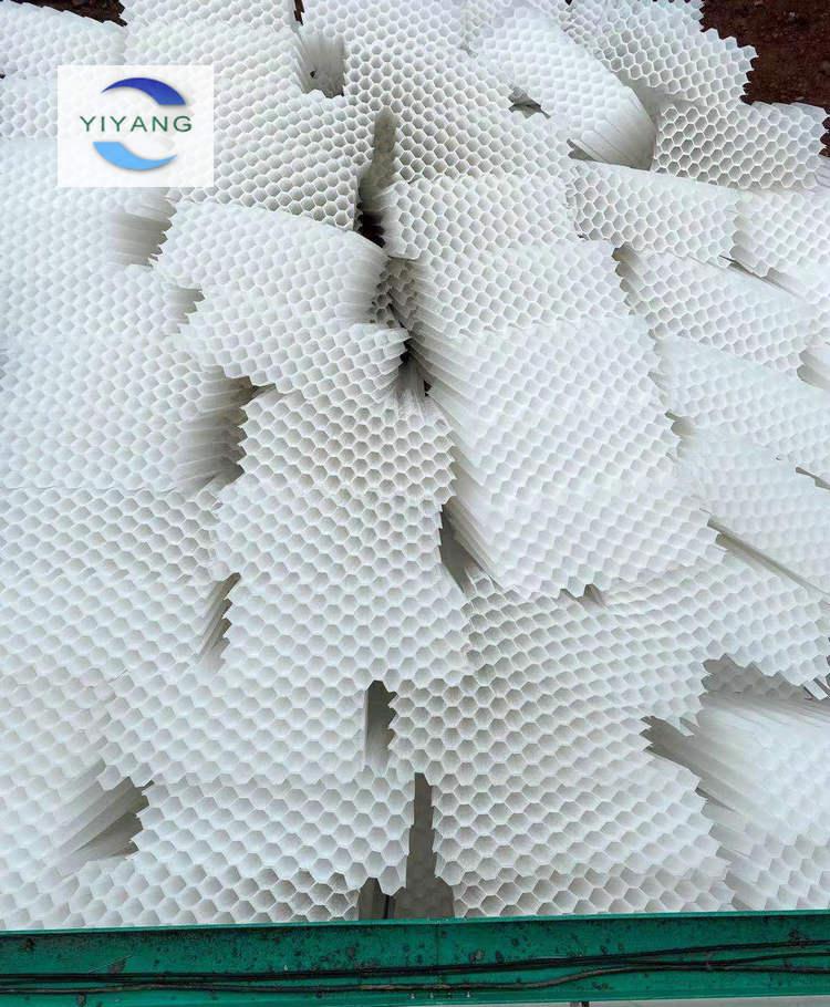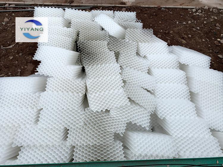 3、進(jìn)行蜂窩斜管填料的焊接:現(xiàn)場(chǎng)通電、場(chǎng)地寬敞、開(kāi)始進(jìn)行六角蜂窩斜管填料的焊接服務(wù),上一張斜管和下一張斜管接觸的部分用加熱的電烙鐵粘結(jié),熱接縫完成后,一個(gè)單元的蜂窩斜管為1m2。以此類推將現(xiàn)場(chǎng)的蜂窩斜管填料焊接完畢,留部分備用,焊接陰角、陽(yáng)角。
